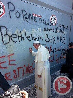 True to form, Israel announced the addition of new houses to the illegal settlement built on the stolen land of Javal Abu Ghnaim, overlooking Bethlehem, while the Pipe was still visiting hostori Palestine. Could this be a ‘Price Tag’ attack by the settler Israeli Government in response to his prayer at the Apartheid Wall?