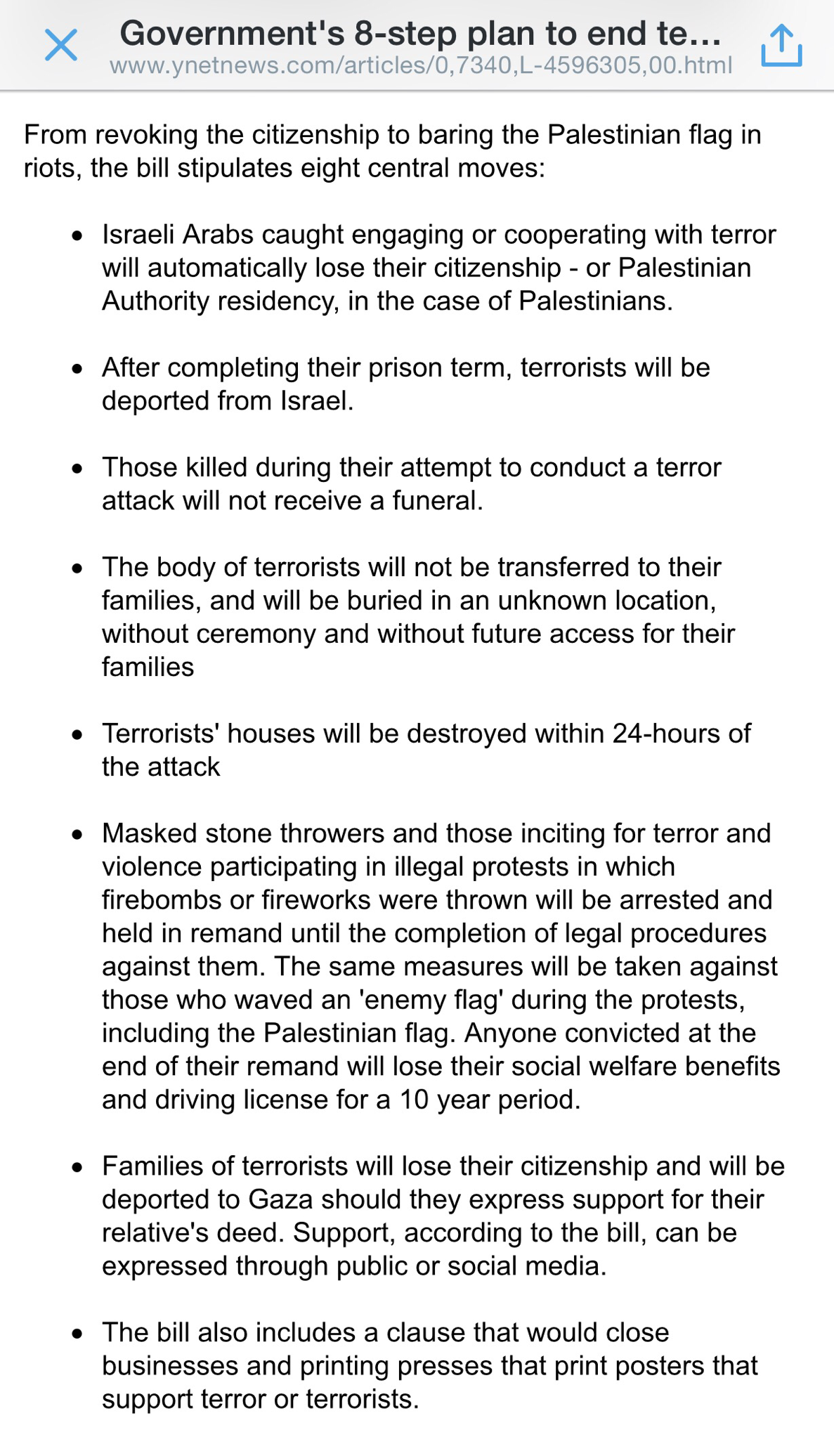 The new ‘eight point plan to defeat terror’ will only add to the hatred and the mistrust between Palestinians and Israelis. This is especially the case in Jerusalem. It is likely to increase rather than decrease the chances of more violence. The ‘International Community’ shamefully acquiesces but people across the World see Israel for what it is. The BDS movement is escalating and is hurting.