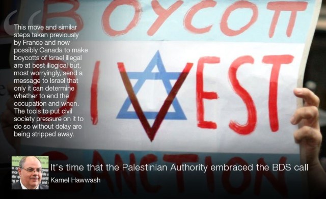This move and similar steps taken previously by France and now possibly Canada to make boycotts of Israel illegal are at best illogical but, most worryingly, send a message to Israel that only it can determine whether to end the occupation and when. The tools to put civil society pressure on it to do so without delay are being stripped away.