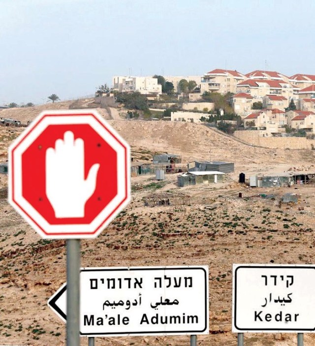 Road signs are seen in front of the Israeli settlement of Maale Adumim in the occupied West Bank, on January 17th. (Reuters)