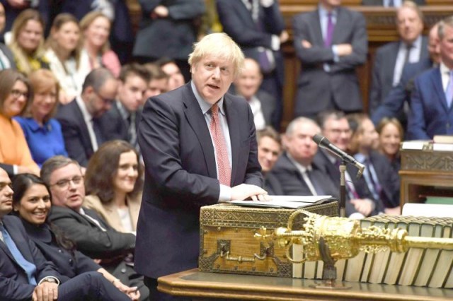 Unexpected start. Britain’s Prime Minister Boris Johnson speaking at the despatch box in the House of Commons in London, during the first sitting of Parliament since the general election, December 17. (AFP)