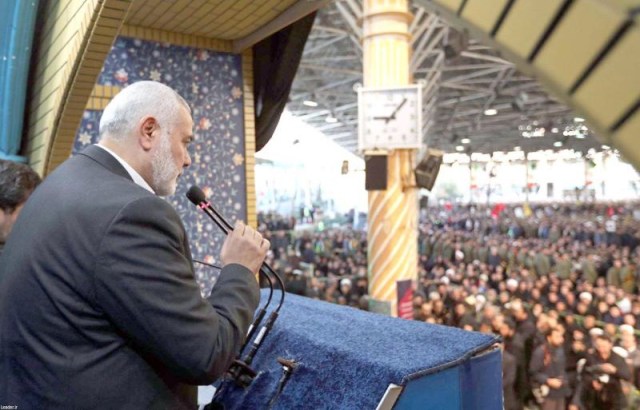 Show of loyalty. Palestinian Hamas Chairman Ismail Haniyeh delivers a speech during a funeral procession at Tehran University for commander of al-Quds Force Qassem Soleimani and Abu Mahdi al-Muhandis, the deputy head of Iraq’s Popular Mobilisation Forces,