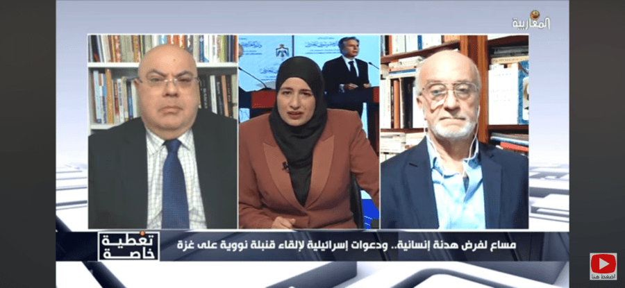 مساع لفرض هدنة انسانية..ودعوات اسرائيلية لالقاء قنبلة نووية على غزة On November 5, 2023 By kamelhawwashIn فلسطين, إسرائيل, حصار غرة, غزة مشاركتي على قناة المغاربية بتاريخ ٥/١١/٢٠٢٣ Share this: Click to share on X (Opens in new window) X Click to share on Facebook (Opens in new window) Facebook Click to share on Pinterest (Opens in new window) Pinterest Click to share on WhatsApp (Opens in new window) WhatsApp Click to email a link to a friend (Opens in new window) Email Like Loading...